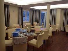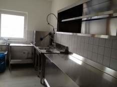 Das Restaurant sieht schon richtig schick aus... Tische, Stühle und das zukünftige Frühstücksbuffet stehen nun an Ort und Stelle. Auch die Küche des Hauses wurde bereits aufgebaut und wartet nun darauf, bald in Betrieb genommen zu werden.