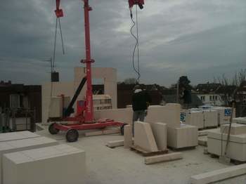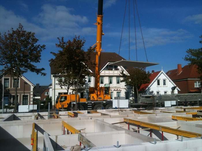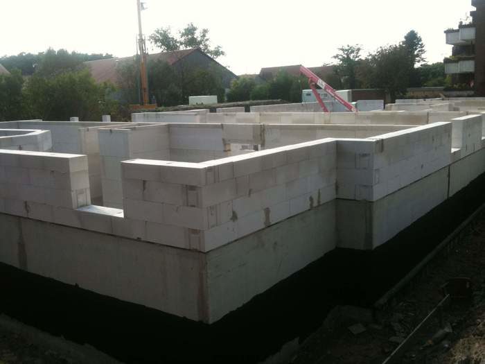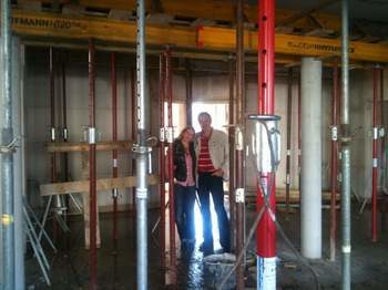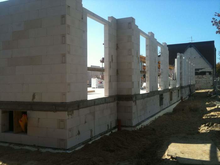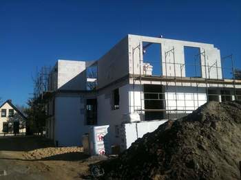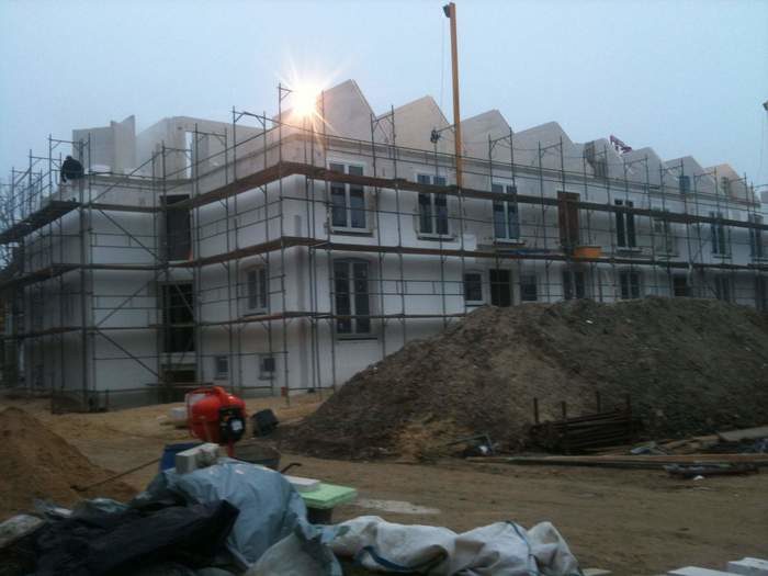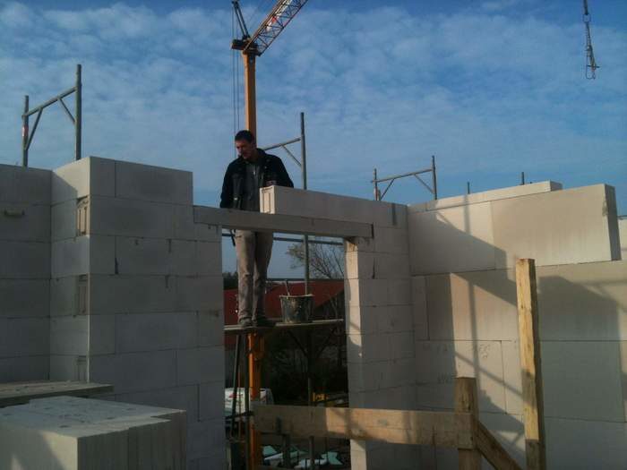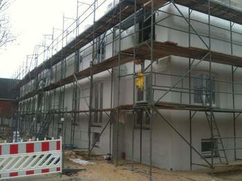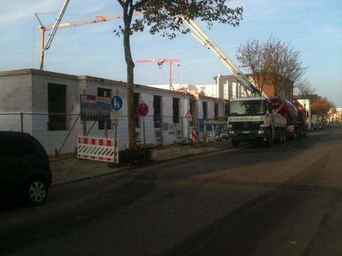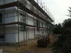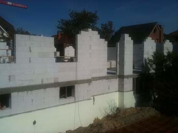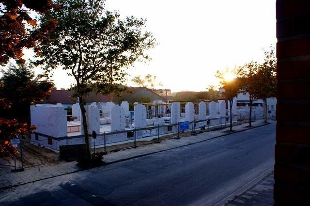Dies ist die Rückansicht und es ist nun deutlich zu erkennen, der Rohbau neigt sich dem Ende. Der Zimmermann hat bereits Maß genommen und morgen kann mit den Richtarbeiten begonnen werden.